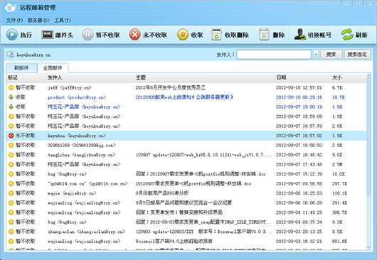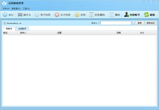 点击新邮件将收取服务器上新邮件信息,点击全部邮件将收取服务器上的所有邮件的邮件信息,选择邮件,点击“暂不收取”或永不收取等操作按钮。