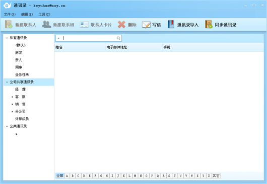 选择“私有通讯录”或“公共通讯录”,点击“新建联系组”打开新建分组界面,我司邮箱帐号可同步Web端共享通讯录。