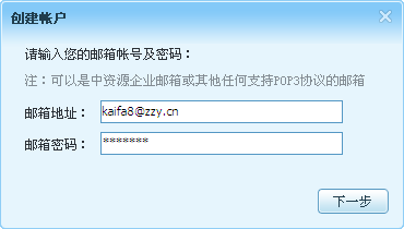 输入对应的邮箱帐号和密码,点击“下一步”。