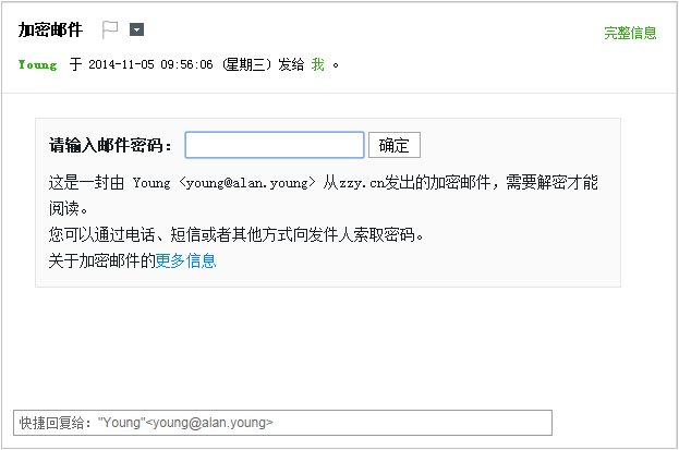 如果您收到了一封加密邮件,需要先对邮件解密才可查看内容。